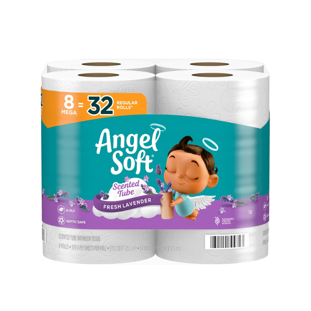 Soft Toilet Paper with Lavender Scent - 8 Mega Rolls, Strong & Absorbent