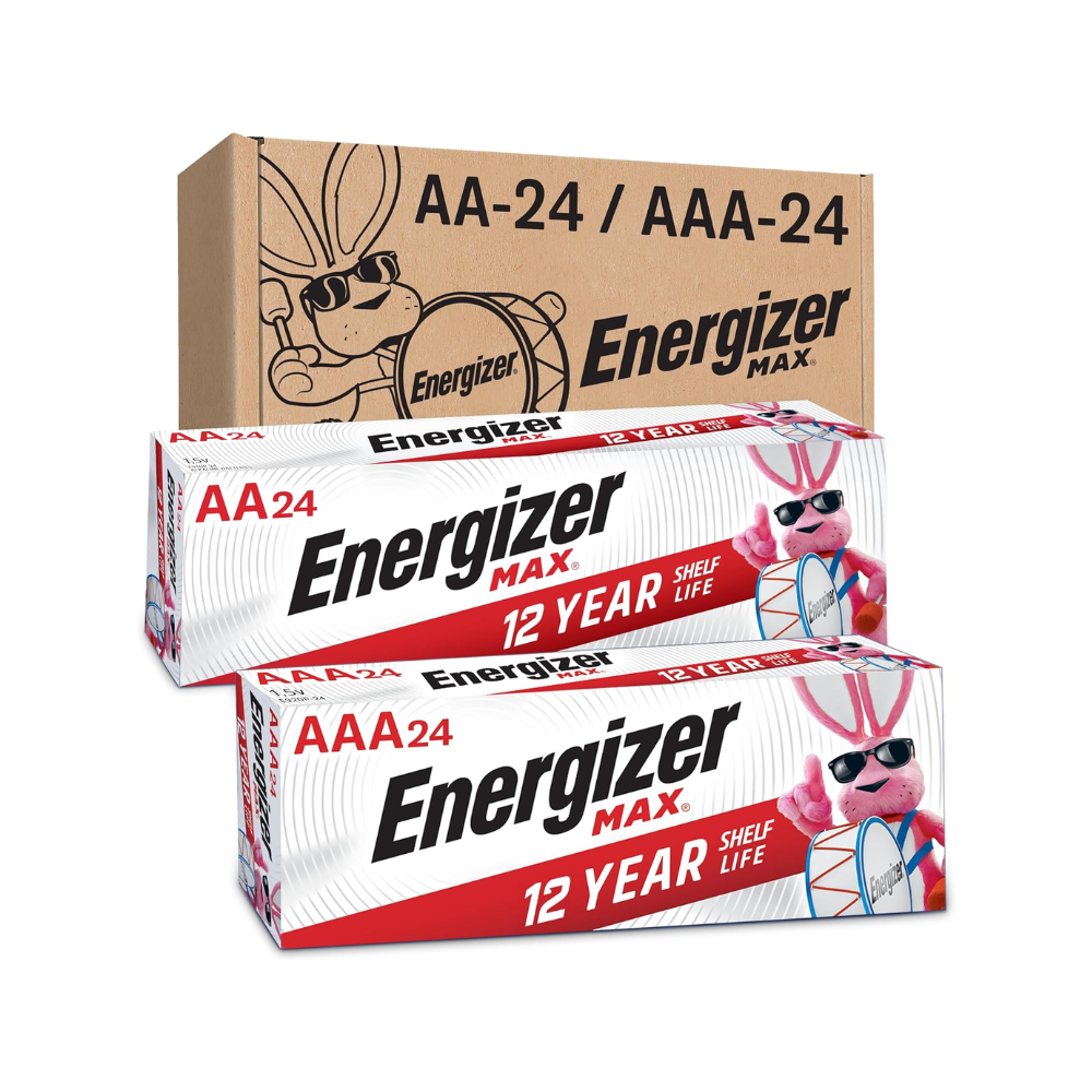 - 24 pack of Energizer MAX alkaline double AA batteries and 24 Pack of Energizer MAX alkaline triple AAA batteries