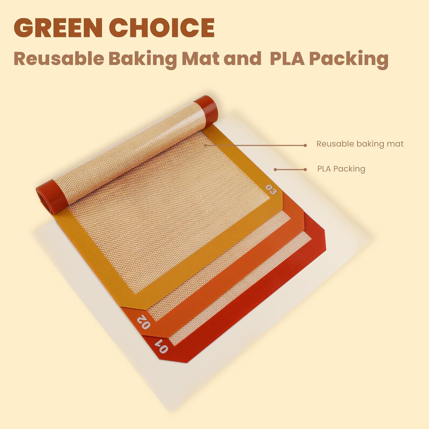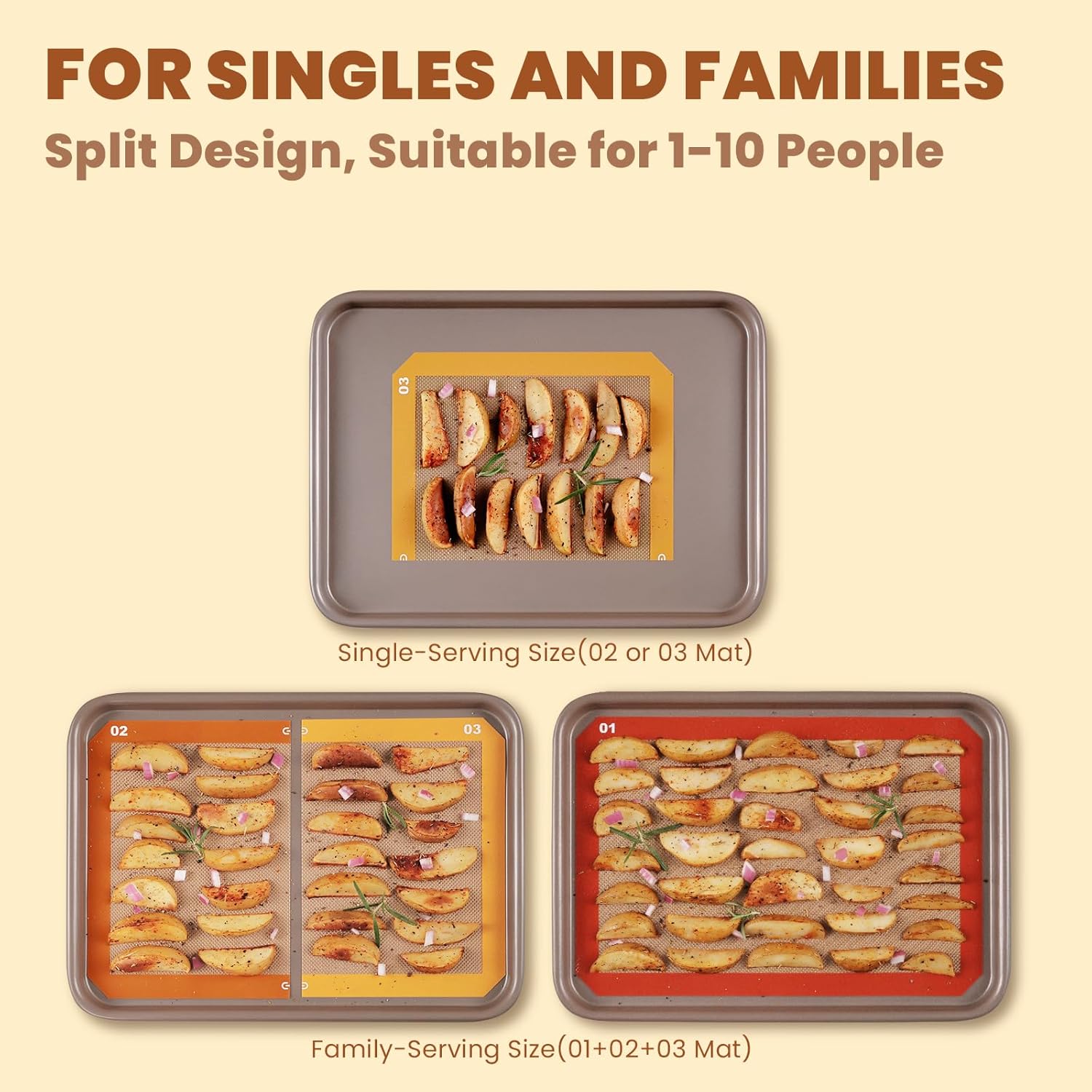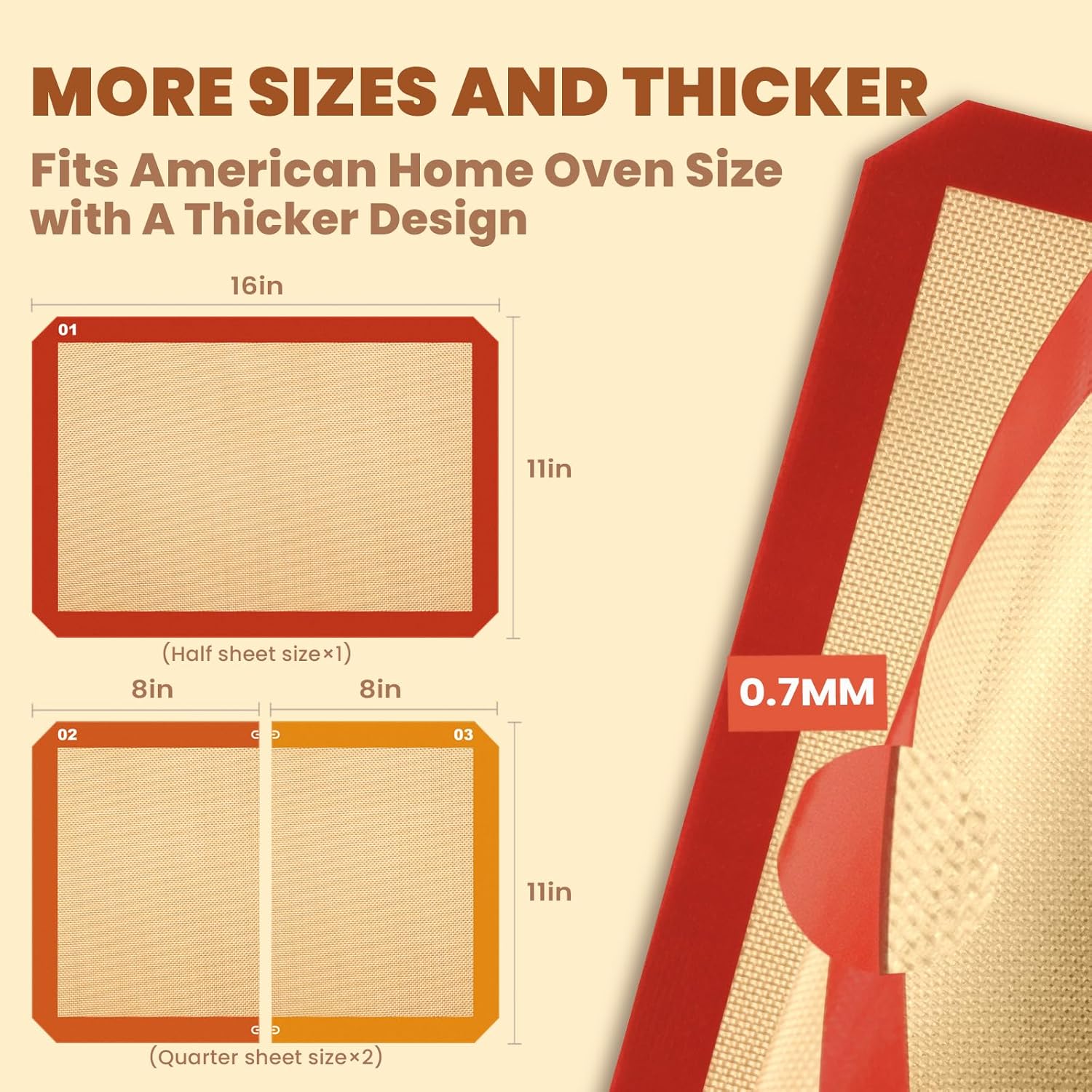 3 Pcs Silicone Baking Mat Set - Non-Stick, Reusable, Half & Quarter Sheet