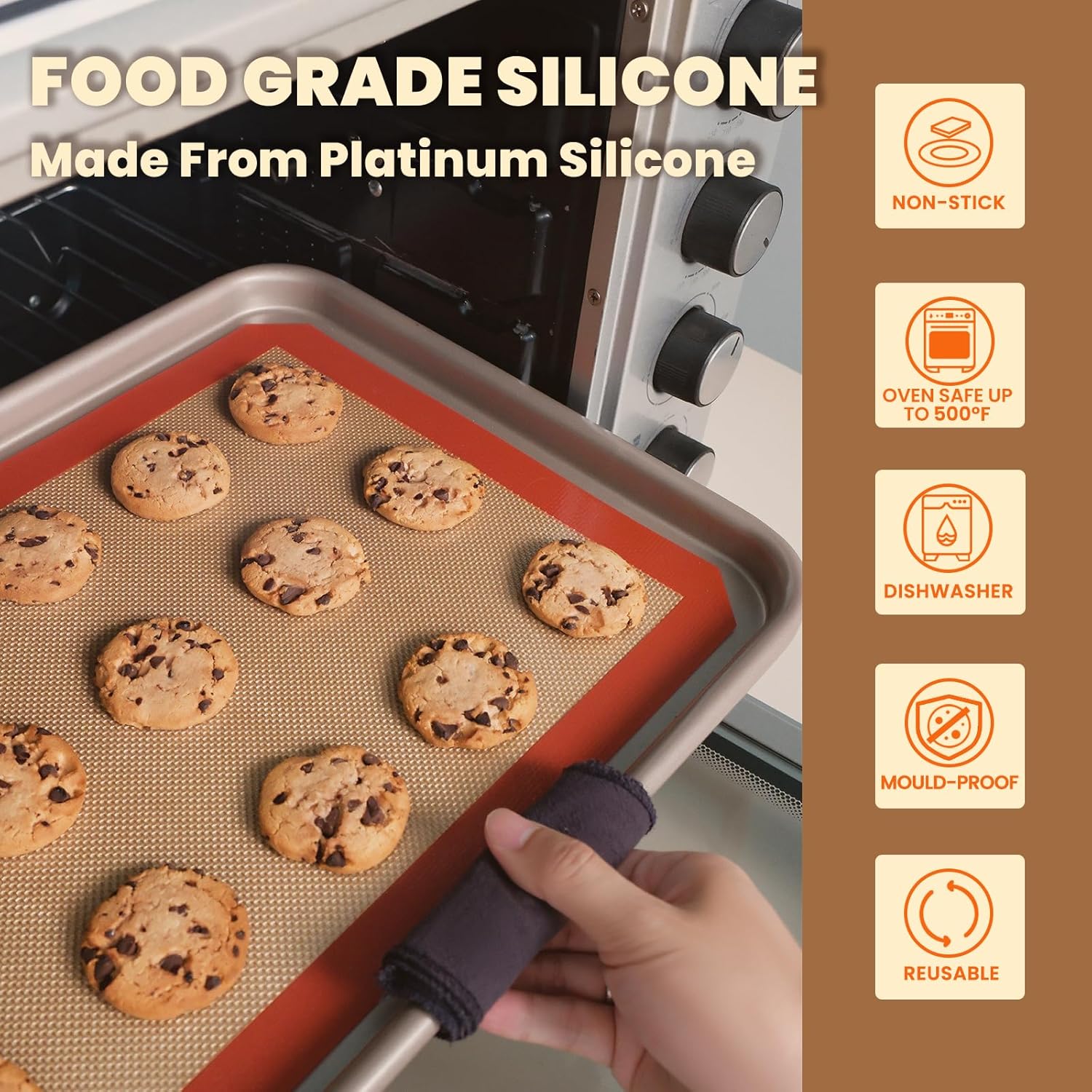 - [Food-grade silicone] Made of platinum silicone, it can be safely used in ovens, refrigerators, dishwashers, etc. The silicone baking mat can withstand high temperatures up to 260°C/500°F and low temperatures up to -40°C/-104°F.
