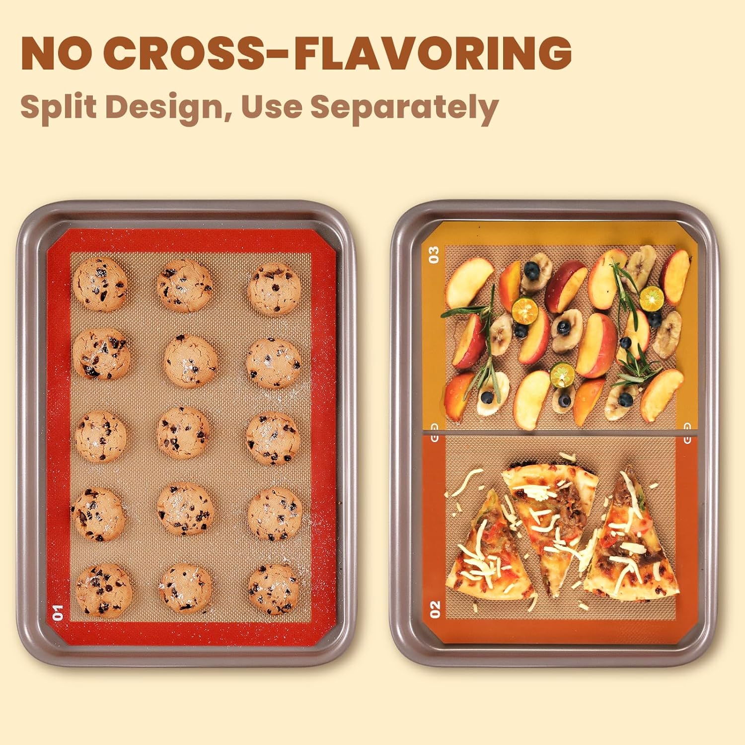 - [Exclusive Split Design] You will get 2 half sheets mats, or 1 half sheet mat and 2 quarter sheets mats. Freely combine to fit your baking mat needs.