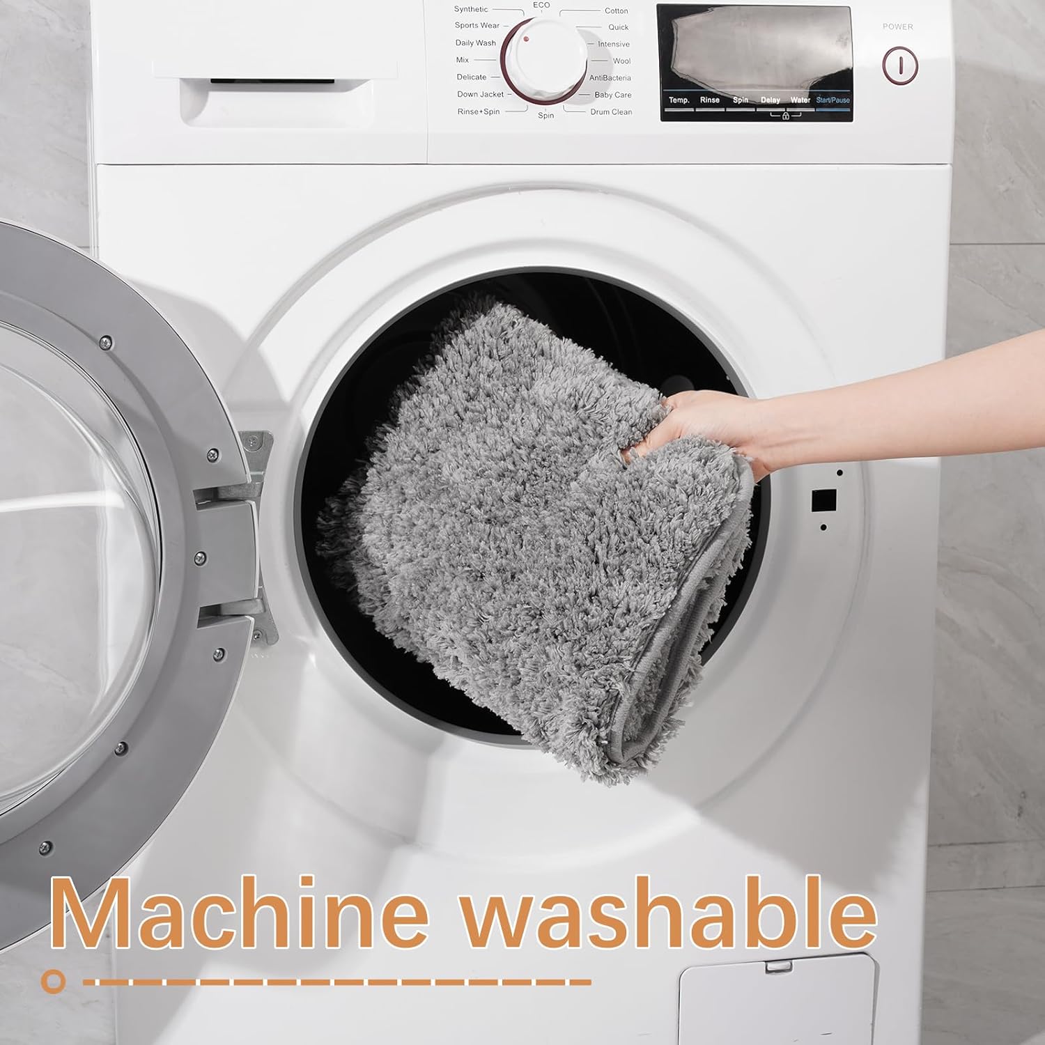 - Machine washable: This washable bathroom rug can be machine washed or hand washed in cold water and tumble dried on low speed or hung to dry afterwards; No matter how many times you wash it, our grey bathroom rugs will retain their original color