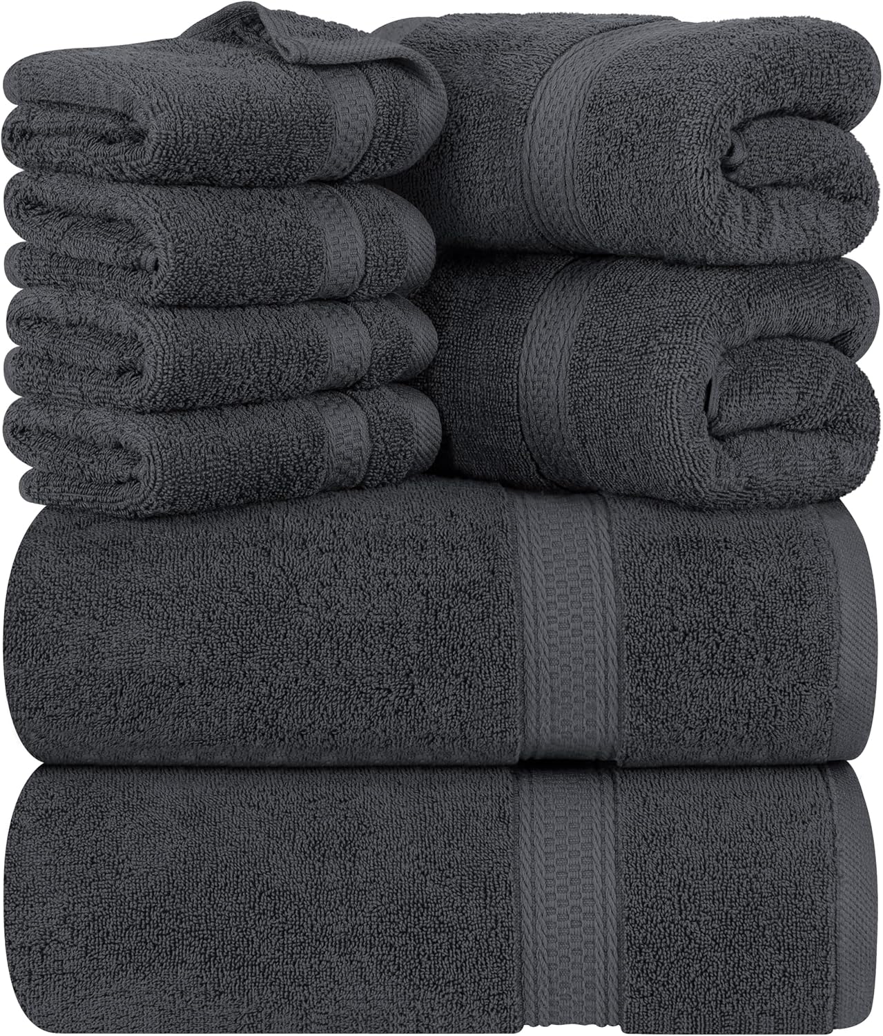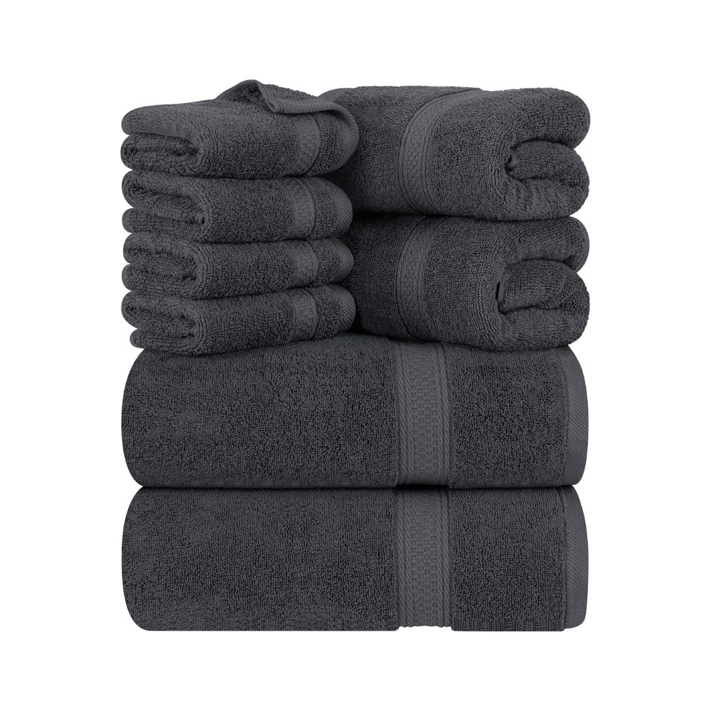 8-Piece Premium Towel Set - 600 GSM, 100% Cotton, Highly Absorbent (Grey)